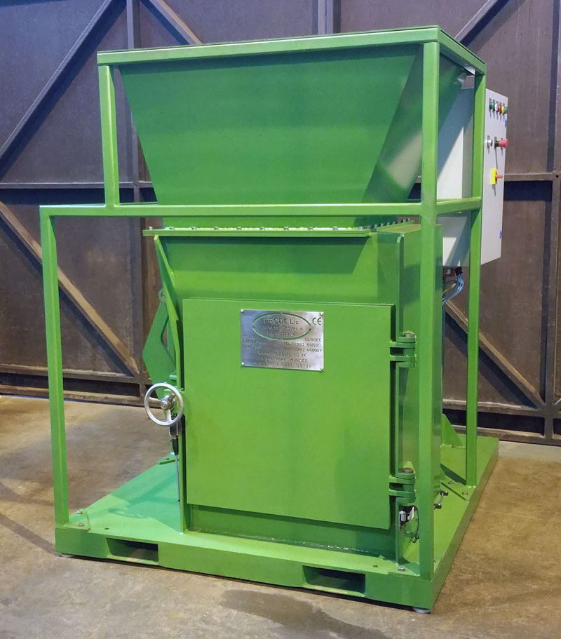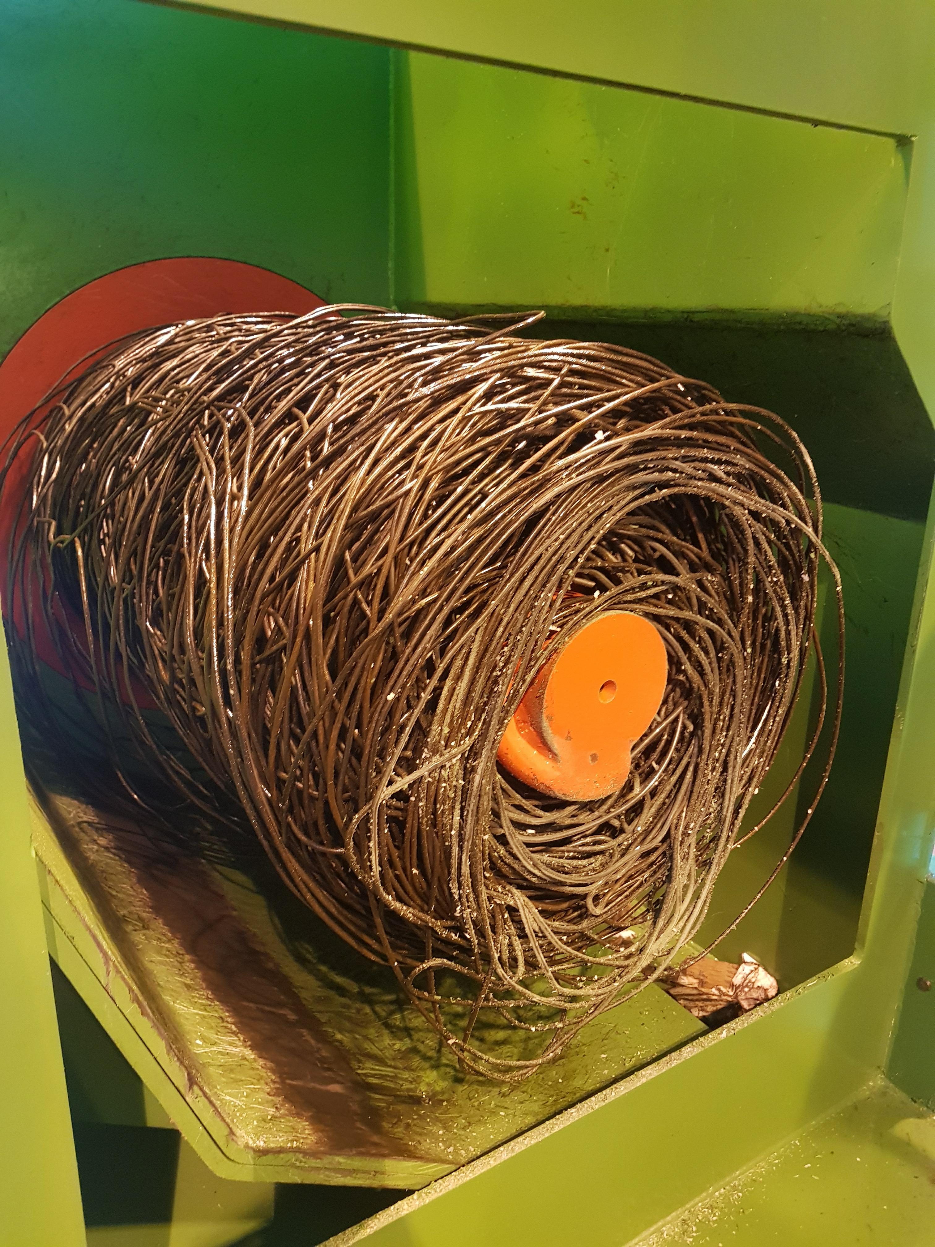 Prode Wire Winders are used for the efficient, continuous disposal of both metallic wires and straps, each unit features a barbed and scrolled shaft to allow for a well compacted cylindrical coil (circa 500mm dia, circa 100kg weight) with the benefit of ease of ejection when full.